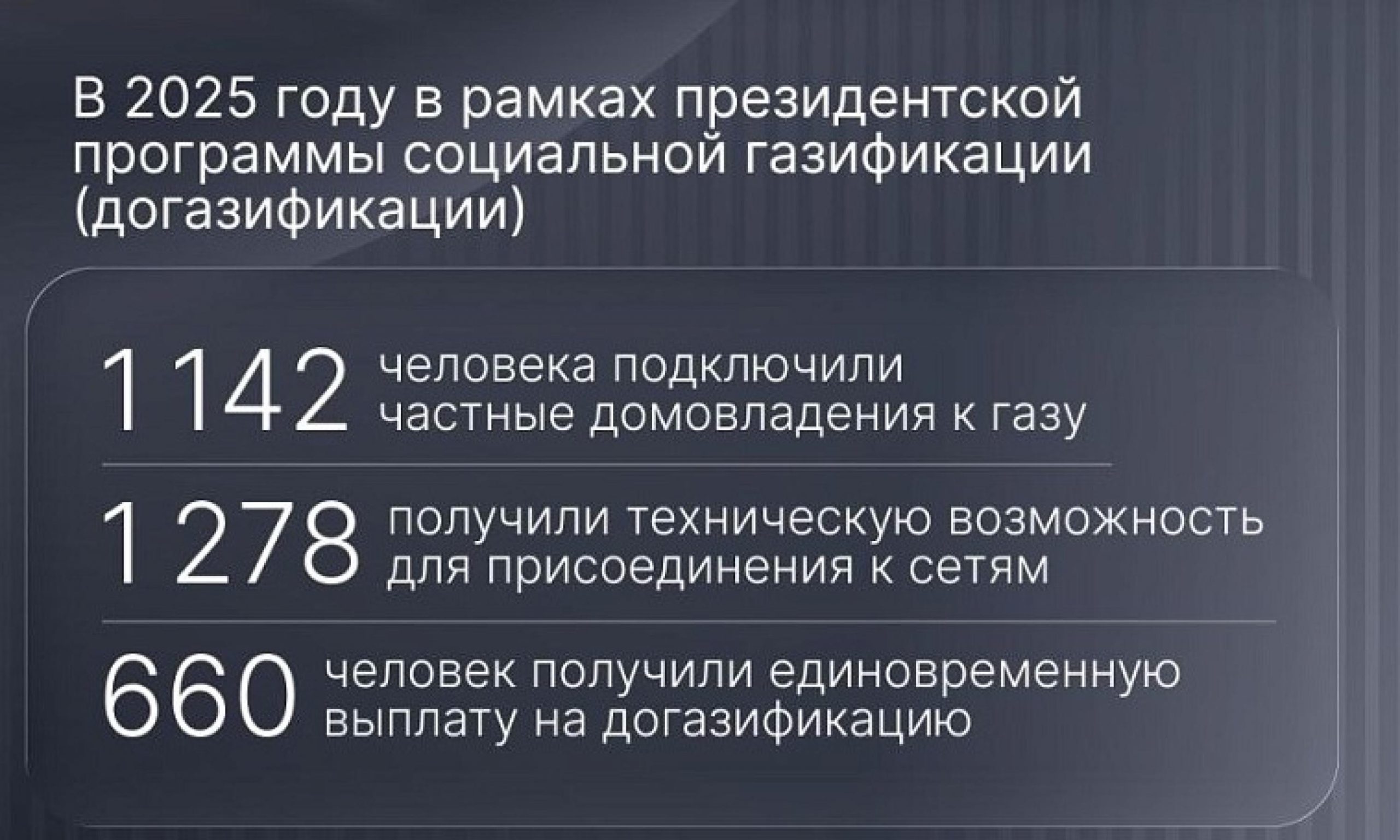 В регионе продолжается успешная реализация программы догазификации. Как сообщает информационное агентство «Регион 29», в прошлом году 1142 человека начали использовать голубое топливо в быту. Работы по созданию технической возможности для присоединения к газовым сетям завершены для ещё 1278 домовладений —